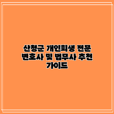 산청군 개인회생 전문 변호사 및 법무사 추천 가이드