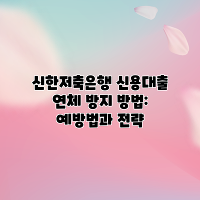 신한저축은행 신용대출 연체 방지 방법: 예방법과 전략