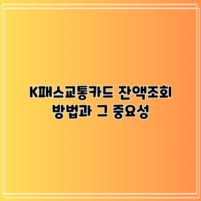 K패스교통카드 잔액조회 방법과 그 중요성