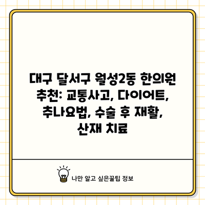 대구 달서구 월성2동 한의원 추천: 교통사고, 다이어트, 추나요법, 수술 후 재활, 산재 치료