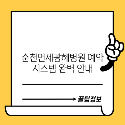 순천연세광혜병원 예약 시스템 완벽 안내